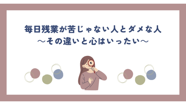 仕事のお役立ち情報 毎日残業が苦じゃない人とダメな人 ~その違いと心はいったい~ pa-tya 仕事のスタイルは人それぞれ。「残業が続いても全く気にならない人」がいる一方で、「残業が毎日続くとどうしても辛い」と感じる人もいます。ここで …