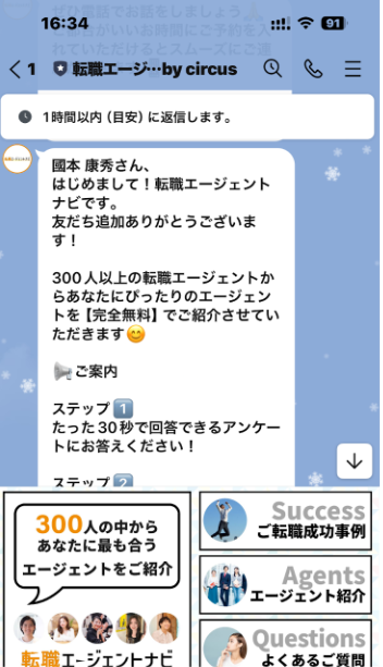 エージェントのマッチングは登録30秒で、その後に行われるLINEでのやりとりで簡単に完了します。