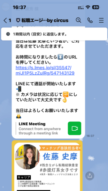 LINEでのやり取りになるので、簡単ですし、面談もオンラインで完了します。